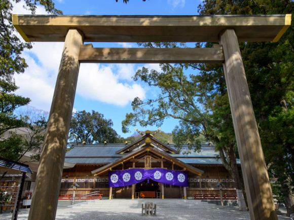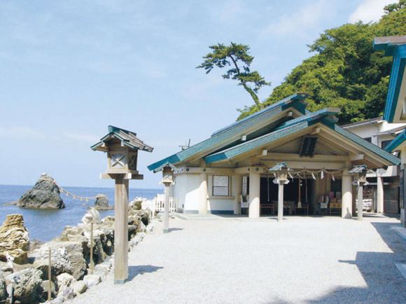 이 신사는 이세진구 신사 참배의 출발 지점이기도 해, 해상에 부부처럼 다가오는 메오토이와(부부 바위) 신체입니다.
